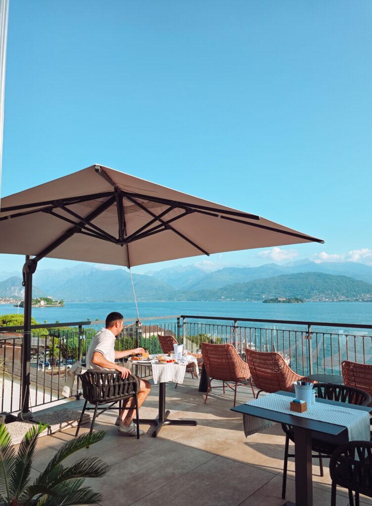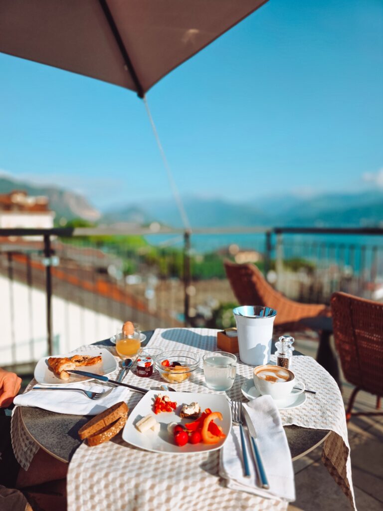 Auf unserer letzten Reise nach Italien haben wir im Sempione Boutique Hotel übernachtet. Ein kleines, familiengeführtes Boutique Hotel in der ersten Reihe des Seeufers. Das Allerschönste hier ist die Dachterrasse, von der ihr einen unglaublichen Blick auf den See und die umliegenden Berge habt. Die Terrasse, die man übrigens barrierefrei über einen Aufzug erreicht, steht allen Gästen zur Verfügung und lädt zum Verweilen ein. Besonders schön ist, dass euch jeden Morgen hier oben das Frühstück serviert wird. Es gibt ein kleines, aber feines Buffet mit allem, was das Herz begehrt und verschiedene Eierspeisen werden euch auf Wunsch ganz frisch zubereitet.